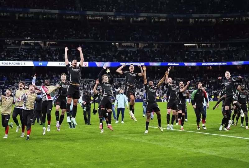 Cuối cùng, vào phút bù giờ 90+3, Arsenal phản công sắc bén và Gabriel Martinelli ghi bàn ấn định chiến thắng 2-1 sau khi loại bỏ Fran Garcia và đánh bại Courtois. Với chiến thắng này, Arsenal lần đầu tiên sau 16 năm đã có mặt ở bán kết Champions League, đối đầu với PSG.