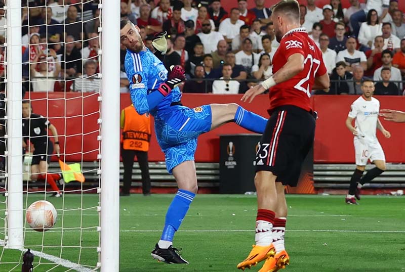 Trong trận đấu rạng sáng nay, hàng thủ của Man Utd đã có màn trình diễn tệ khó tin. Riêng với David de Gea, thủ thành người Tây Ban Nha đã mắc hai sai lầm tai hại. Ở phút thứ 8, De Gea có đường chuyền cho Harry Maguire dù các mũi nhọn của Sevilla vẫn chực chờ quanh vòng cấm. Trước sức ép từ 3 cầu thủ đối phương, Maguire đã lúng túng và để mất bóng dẫn đến bàn mở tỷ số của En-Nesyri.
