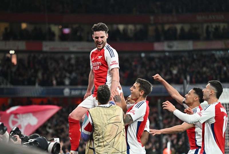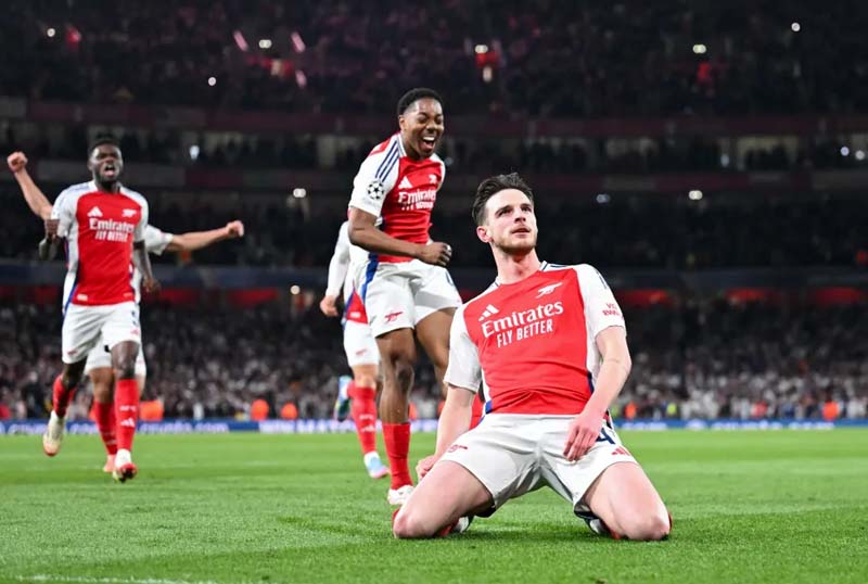 Khoảnh khắc Declan Rice thực hiện cú đá phạt ở phút 70 trong trận tứ kết lượt đi Champions League đã trở thành biểu tượng cho tầm ảnh hưởng của anh tại Arsenal. Chỉ trong 12 phút, tiền vệ số 41 ghi hai bàn từ hai quả đá phạt trực tiếp, cả hai đều là những tuyệt phẩm hiếm có trong nhiều mùa giải.