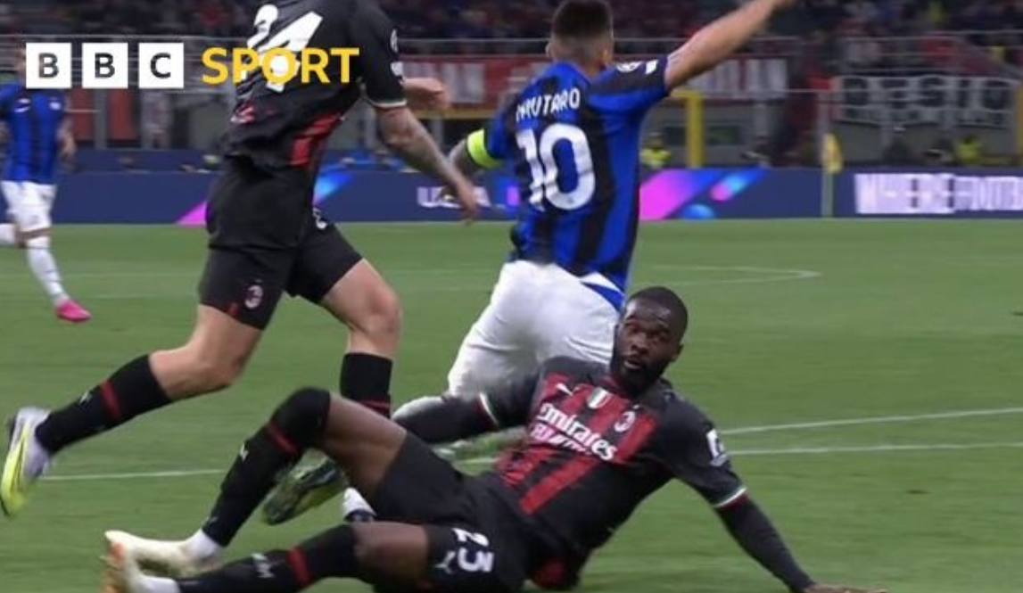 Rất may là Kjaer đã kịp lùi về để hạn chế Martinez đi bóng. Sau đó, tiền đạo của Inter đã bất ngờ có tình huống ngã ra sân khiến trọng tài ngay lập tức chỉ tay vào chấm phạt đền và rút thẻ vàng cho Kjaer.