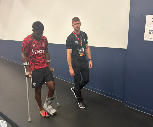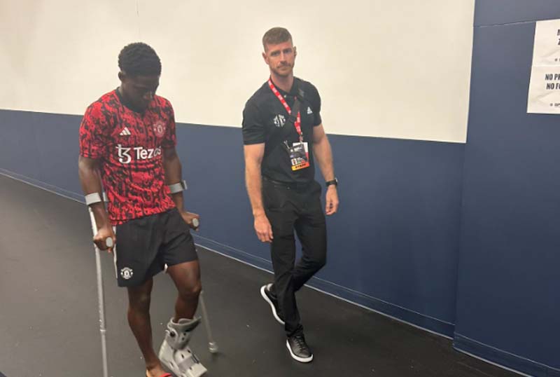 Trong trận đấu trên đất Mỹ sáng nay, Kobbie Mainoo đã được HLV Erik ten Hag xếp đá chính. Tuy nhiên, tiền vệ 18 tuổi buộc phải rời sân ngay ở phút thứ 5 của trận đấu do dính chấn thương mắt cá. Vấn đề của cầu thủ người Anh có vẻ khá nghiêm trọng khi được nhìn thấy phải chống nạng và đeo thiết bị bảo vệ để rời sân.