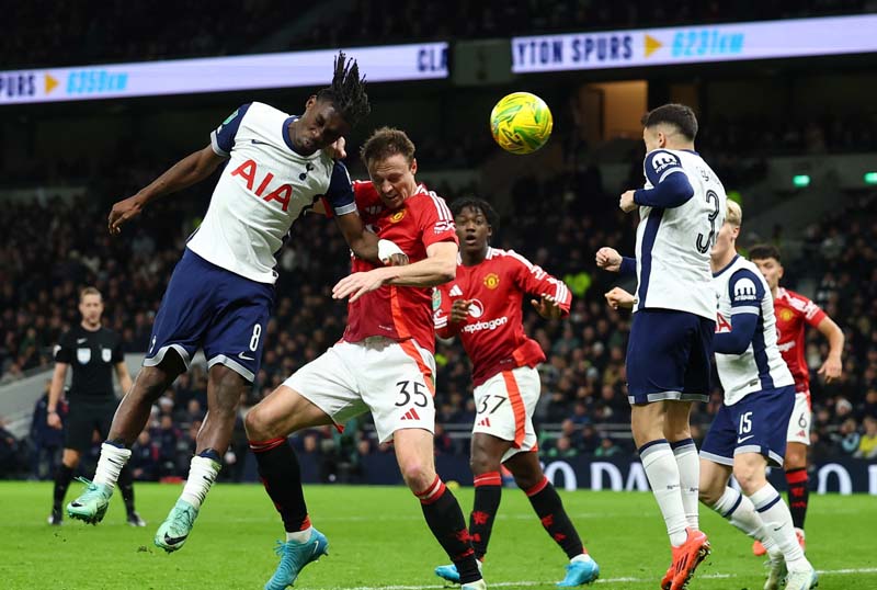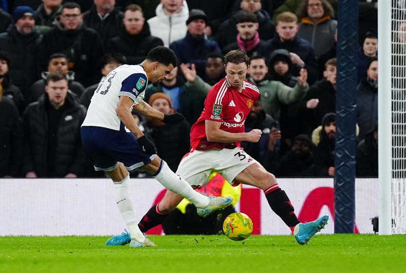 Trận tứ kết League Cup giữa Tottenham và Man United tại sân Tottenham Stadium diễn ra đầy kịch tính. Tottenham nhập cuộc với bộ tứ tấn công Son Heung-min, Solanke, Kulusevski, và Maddison, trong khi Man United bố trí Lindelof và Lisandro Martinez ở trung vệ, với Ugarte và Eriksen hỗ trợ cho bộ ba tấn công Hojlund, Antony và Fernandes.