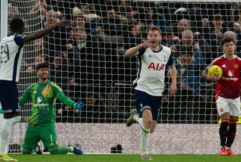 Dù vậy, thủ môn Fraser Forster của Tottenham mắc sai sót, tạo cơ hội cho Man United rút ngắn cách biệt 2-3 nhờ các bàn thắng của Zirkzee và Amad Diallo. Tuy nhiên, vào phút 88, Son Heung-min thực hiện cú đá phạt góc trực tiếp thành bàn, nâng tỉ số lên 4-2. Jonny Evans ghi bàn rút ngắn còn 3-4 ở phút 90+3, nhưng không đủ để Man United có màn lội ngược dòng. Tottenham bảo toàn chiến thắng và giành vé vào bán kết.